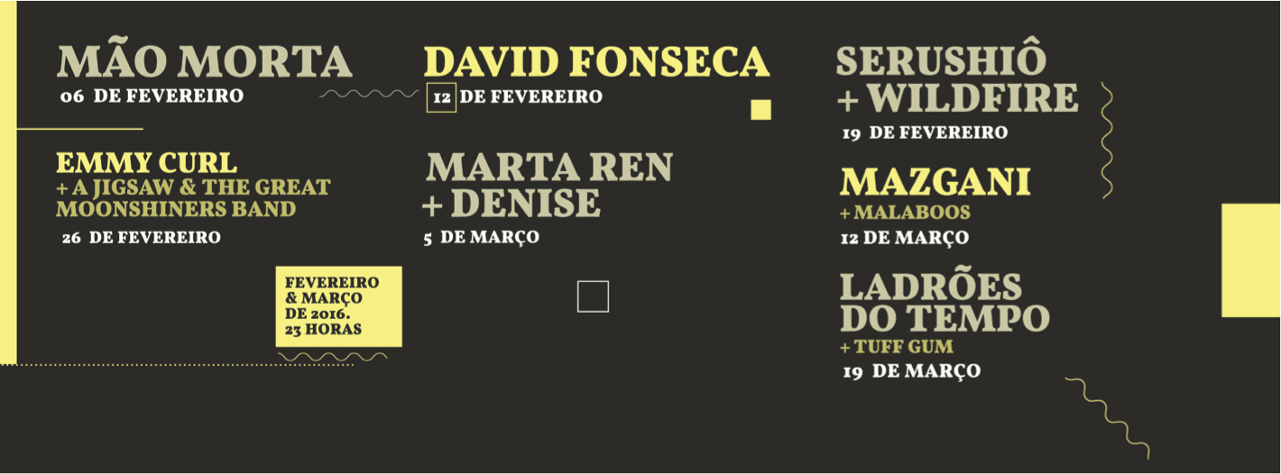 O mês termina ao som dos A Jigsaw & The Great Moonshiners Band e de Emmy Curl. A dupla A Jigsaw, que foi comparada pela revista francesa Les Inrockuptibles a nomes como Tom Waits ou Leonard Cohen, mescla a folk, o blues, a literatura, apresentando ao vivo no próximo dia 26 de Fevereiro o disco No True Magic. Emmy Curl, por sua vez, é um talento nato. Criada numa família de artistas, compôs o primeiro tema com apenas quinze anos, e é atualmente uma das promissoras artistas da pop nacional independente.