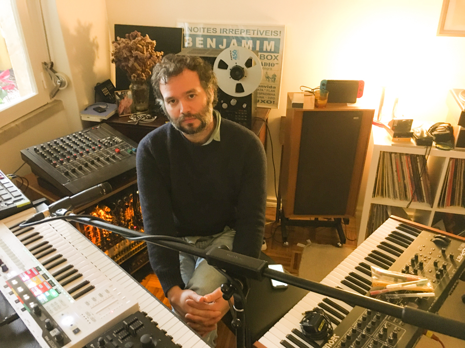 Benjamim: Acho que quando começas, nunca tens uma intenção muito clara, porque a música não funciona assim, ou seja, eu decido «vou fazer um disco» mas a declaração só pode vir depois de haver alguma coisa, de existir algum material que tu penses «ok isto pode dar algo, pode dar azo a fazer um disco, ou este caminho é um conceito novo que eu quero explorar para ser um disco». Foi um bocado o que aconteceu. Comecei há 6 anos, portanto, eu estava ainda a acabar o 1986, já tinha gravado o disco e ia misturar e estava muito, muito farto de fazer canções. Estava farto da cena de andar sempre à volta das letras e da eficácia da canção e de refrão/verso/bridge – também estava a produzir muitas coisas, não era só com a minha própria música, mas era com tudo o que tudo o que estava a fazer – e comecei na minha MPC [music production center]. Isto começou quase como um disco de hip hop, na verdade, com samples de coisas que eu agarrava e samplei o meu amigo AP Braga, no disco tenho assim umas referências, samplei-me a mim próprio, samplei discos que eu produzi e é um bocado o processo de um disco de hip hop, todo na MPC de repente ia a partir dos samples… comecei com essa espécie de exercícios de escape, que era o que era, levava a MPC e uns phones e um tecladozinho e sempre que ia para um sítio qualquer, levava aquilo e isolava-me no meu mundo e escapava para esta música, e é a partir do momento em que começaram a aparecer algumas ideias assim um bocado mais electrónicas, eu comecei a interessar-me muito pela ideia de fazer um disco longo – o disco tinha para aí 26 músicas na versão original, ficou muita coisa de fora. E pronto, foi nascendo o conceito, foi nascendo disco, o conceito das Berlengas nasceu logo quase desde o início, que as Berlengas era uma ideia que era um bocadinho uma coisa… era um escape, uma espécie de uma piada, uma private joke para mim próprio, e depois o conceito foi ganhando muita forma, foram aparecendo canções, depois punha de lado, não ouvia durante montes de tempo e ia fazer outro disco, outra coisa qualquer e coisa ficava ali meia parada, portanto, obviamente não foram seis anos sempre a trabalhar no disco.