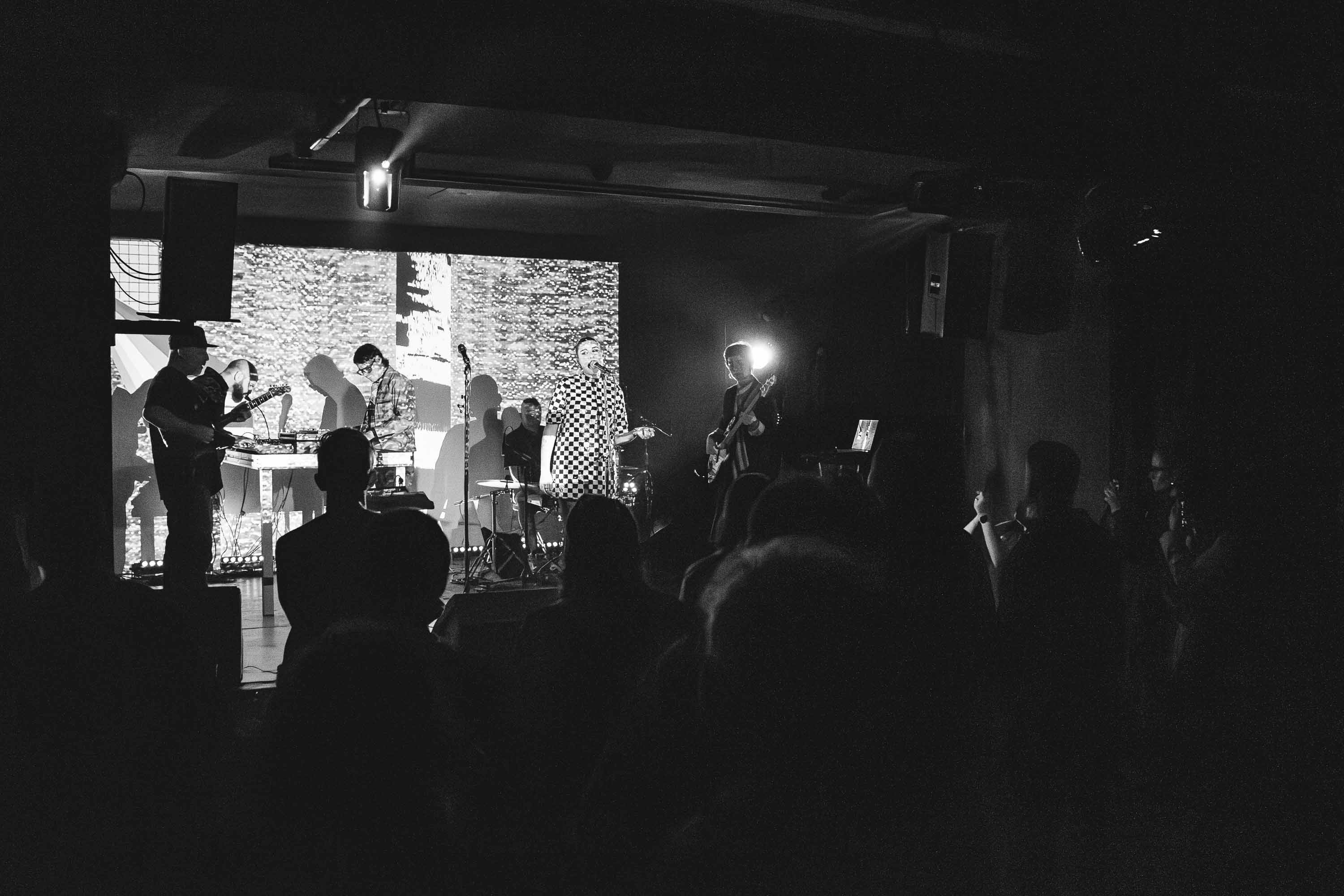 Senti-me completamente entregue a esta descoberta. Ao olhar em redor, percebi que era um sentimento unânime entre o público, que reagia com um misto de familiaridade e deslumbramento. Deixámo-nos levar pelo prazer e energia com que a banda nos trazia estas sonoridades densas e cheias de texturas. A viagem é também visual, com projeções de colagens de media retro, cores vibrantes e formas abstratas.