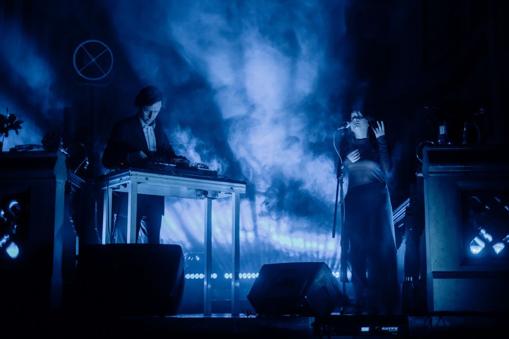 Dupla de artistas ucranianos, cujo “trabalho prolonga a tradição da música medieval ocidental através da síntese modular” e cuja música se “inspira na herança vocal autêntica ucraniana” (bandcamp dos artistas), revelaram uma simbiose perfeita entre som e espaço, dando um concerto arrebatador. Os sintetizadores modelares de Heinali anunciaram um outro tipo de oração, feita não de palavras, mas de vibrações. A voz de Adrianna, etérea, flutuou com a neblina no ar, enquanto o som foi crescendo, crescendo, até quase rebentar. Os nossos corpos sentiram: nos pés, nas mãos, no peito. Foi uma catarse elétrica, colectiva, uma experiência tanto física, como espiritual.