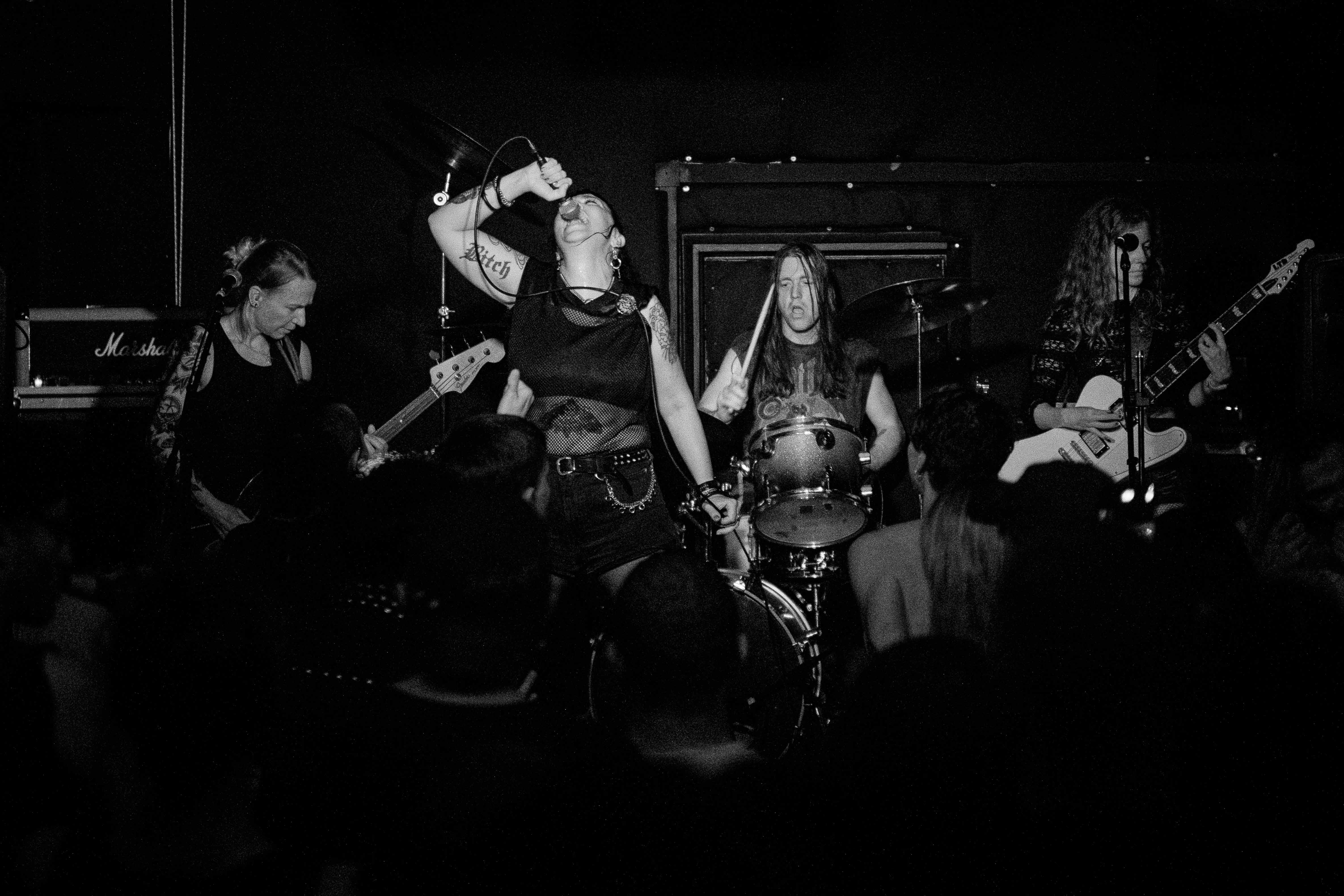 A guitarra de Caroline, apesar de solitária, lança riffs diabólicos e cheios, enquanto o baixo gordo e rouco de Dorien nos empurra para o núcleo terrestre e a bateria de Victor nos conduz à volta da sala como uma Harley no poço da morte! Está feita a cama, ou o caos harmonioso, para o vozeirão acre de Eva entrar em cena e nos agarrar pelos colarinhos! E é aí, que em nosso socorro, chegam os orelhudos e empolgantes coros do resto da banda!