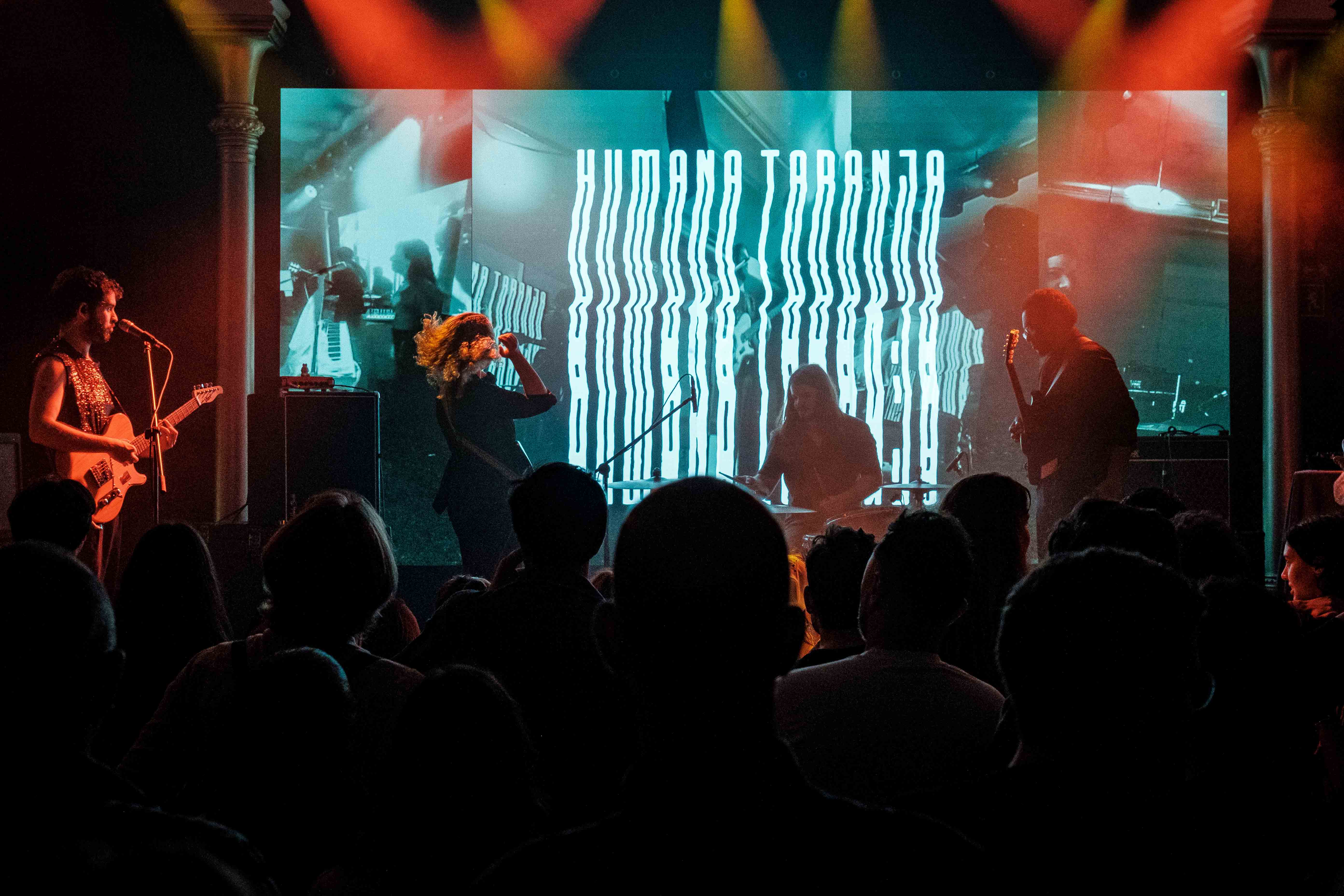 Os Humana Taranja não serão novidade para quem segue o Altamont. Já os vimos no Capote Fest em 2023, na ZDB no final de 2024 e na Musa já este ano, por ocasião do aniversário da Saliva Diva. O seu terceiro disco, EUDAEMONIA ficou entre os nossos preferidos do ano passado. A nosso ver, mereceram então a honra de inaugurar um “novo” espaço na cidade – o Coliseu Club. E coloquei novo entre aspas porque, no fundo, nasceu da conversão do espaço anteriormente utilizado como bar numa sala polivalente e multidisciplinar, cuja capacidade poderá variar de 200 lugares sentados até 800 com plateia em pé.